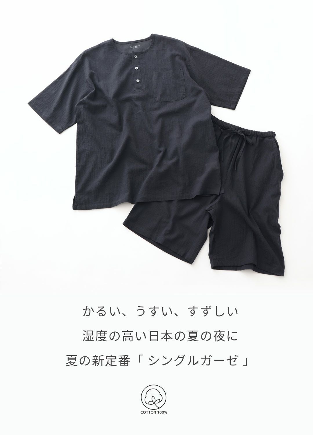 他の画像を見る 薄手でさらっとしたシングルガーゼが夏にぴったりなパジャマ メンズ / シングルガーゼ 無地 半袖 ハーフパンツ パジャマ 販売価格 ¥ 5,489 税込 カートに入れる お気に入りに登録する