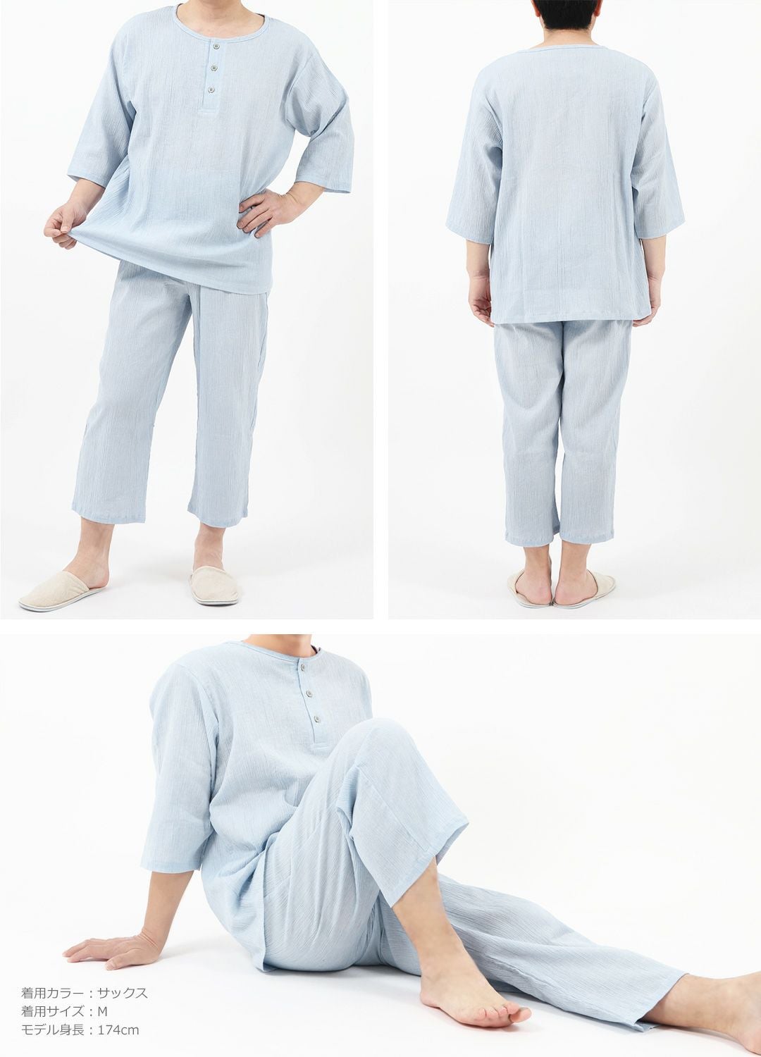 他の画像を見る 薄手でさらっとしたシングルガーゼが夏にぴったりなパジャマ メンズ / シングルガーゼ 無地 半袖 ハーフパンツ パジャマ 販売価格 ¥ 5,489 税込 カートに入れる お気に入りに登録する