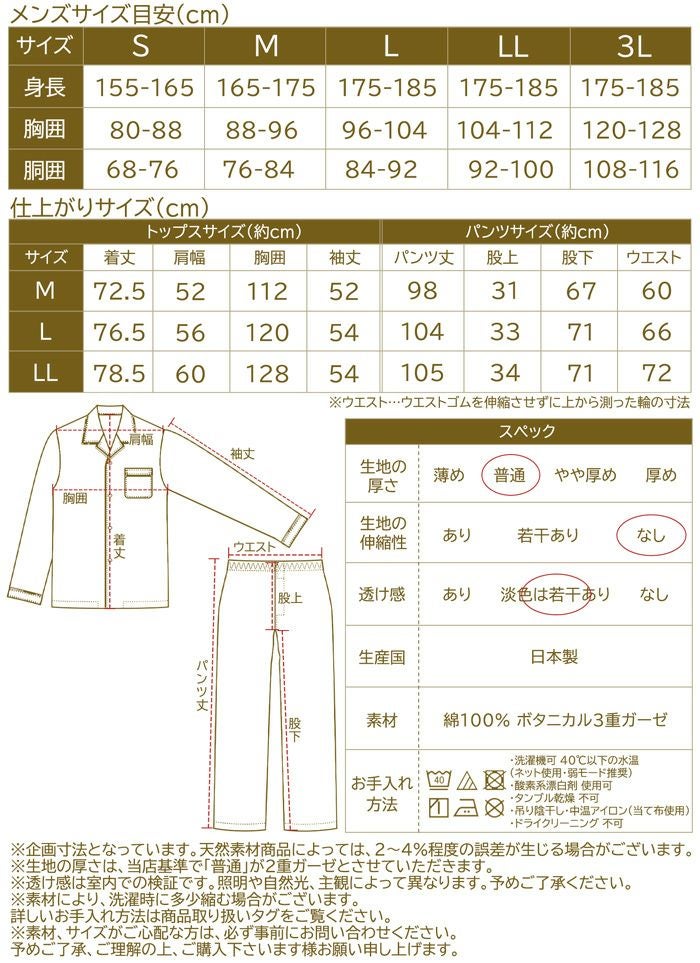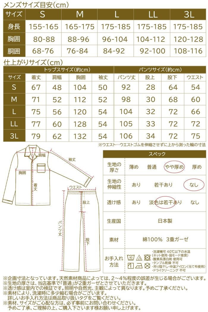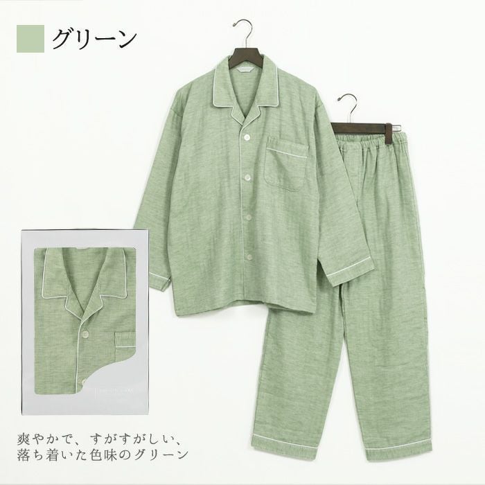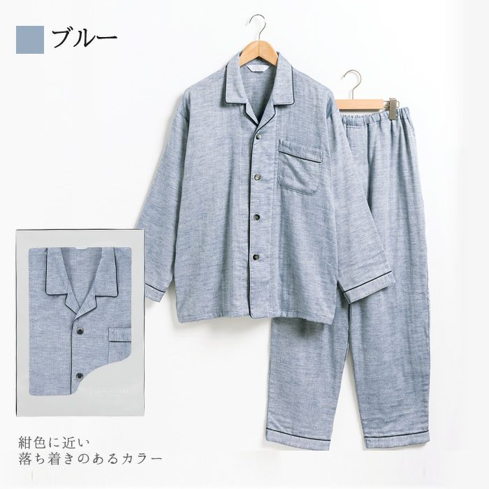 他の画像を見る ギフトにおすすめ。着心地やわらかやさしい肌触り・ふんわりガーゼの贅沢使い。 メンズ / BOX入り:3重ガーゼ 無地 コットンパジャマ 販売価格 ¥ 10,439 税込 カートに入れる お気に入りに登録する