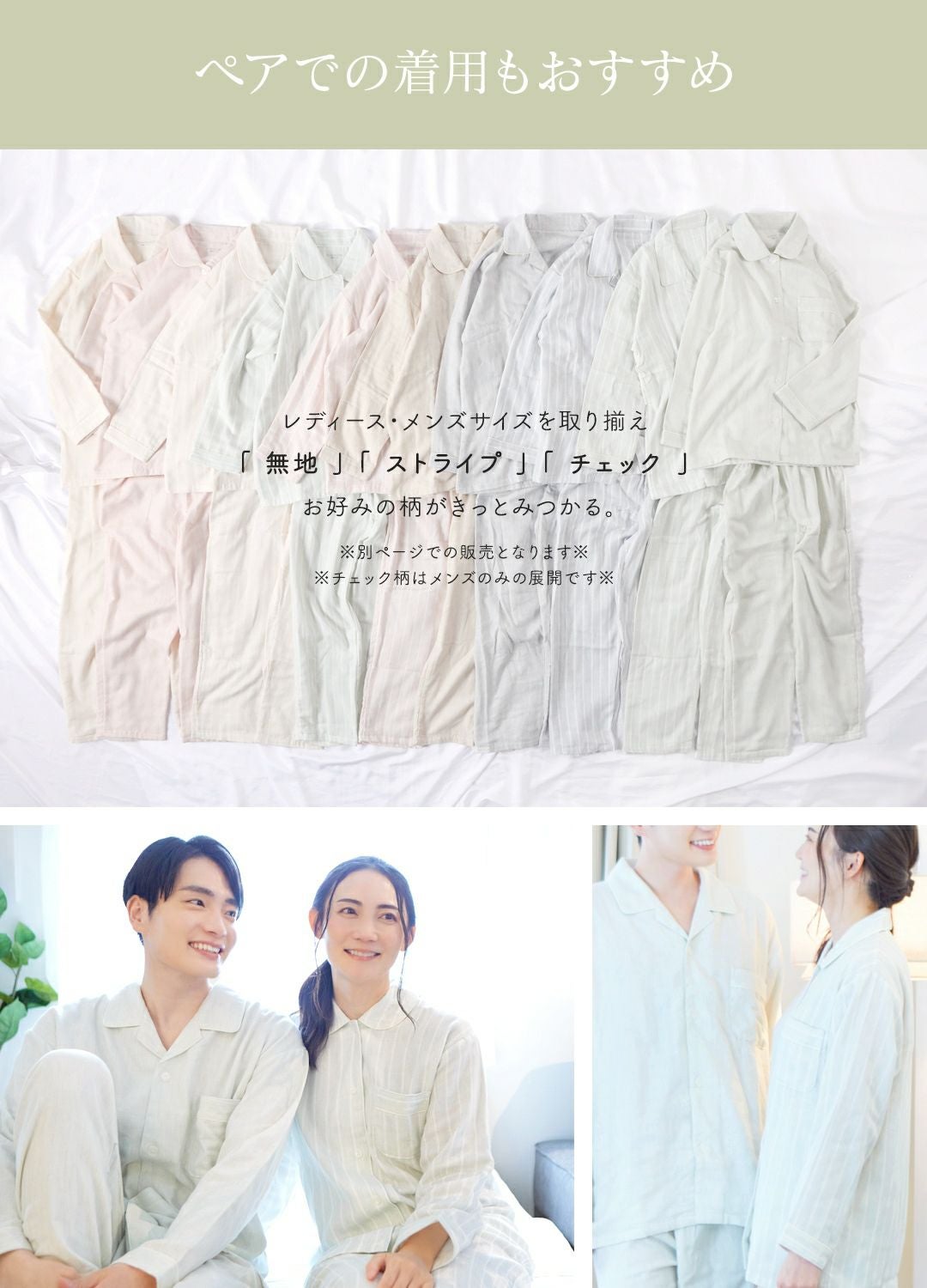 他の画像を見る ふんわりやわらか、着る度に好きになる、贅沢3重ガーゼパジャマ ユニセックス / 3重ガーゼ チェック柄 雲ごこちパジャマ 販売価格 ¥ 9,889 税込 カートに入れる お気に入りに登録する