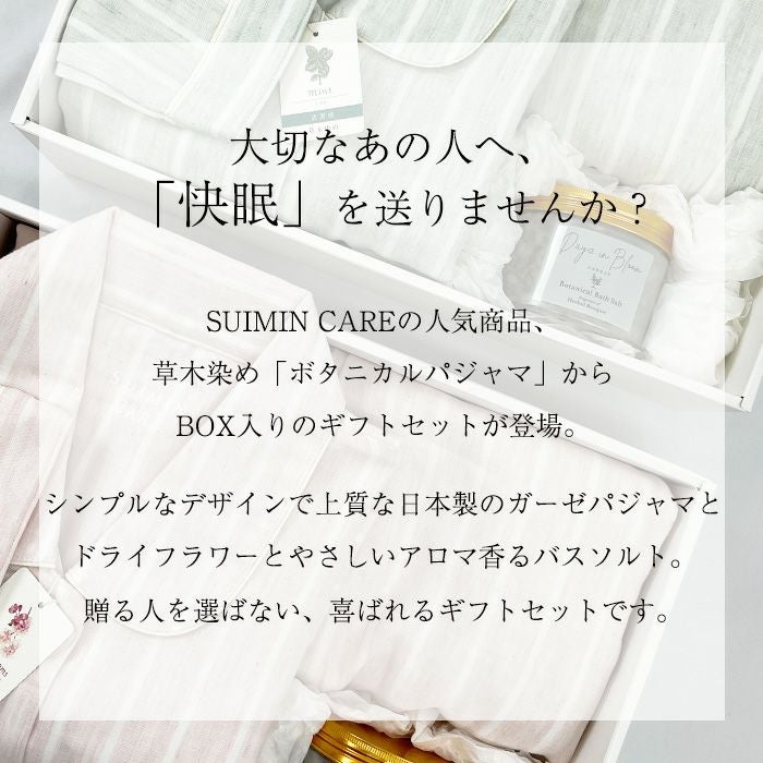 他の画像を見る 草木染め3重ガーゼパジャマと、バスソルトのギフトセット レディース / BOX入り快眠ギフトセット :ボタニカル 魔法の3重ガーゼ ストライプ パジャマ 販売価格 ¥ 11,000 税込 カートに入れる お気に入りに登録する