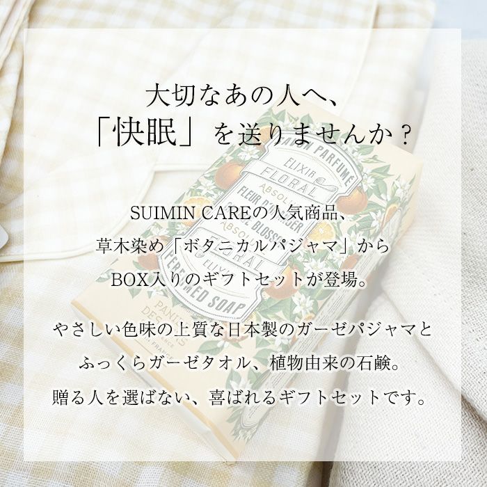 他の画像を見る 草木染め3重ガーゼパジャマと、ガーゼバスタオルのギフトセット レディース / BOX入り快眠ギフトセット :ボタニカル 魔法の3重ガーゼ 無地 パジャマ 販売価格 ¥ 11,000 税込 カートに入れる お気に入りに登録する