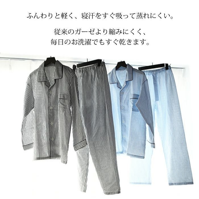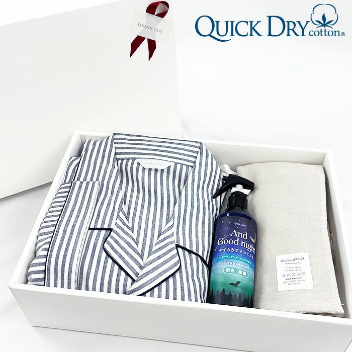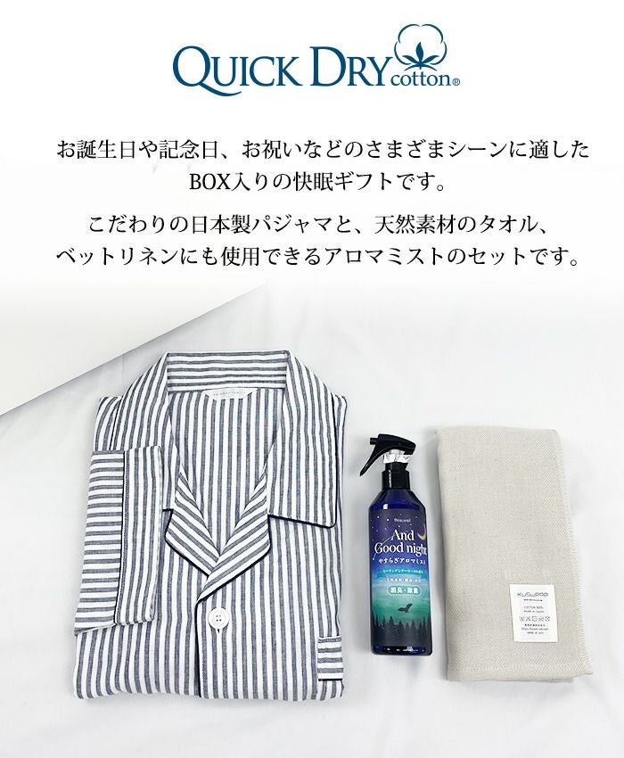 他の画像を見る 睡眠の質を上げる吸水性60倍の吸水速乾ガーゼパジャマと、ガーゼフェイスタオル、アロマミストのギフトセット! メンズ / BOX入り快眠ギフトセット:2重ガーゼ ストライプ柄 ドライコットン パジャマ 販売価格 ¥ 11,000 税込 カートに入れる お気に入りに登録する